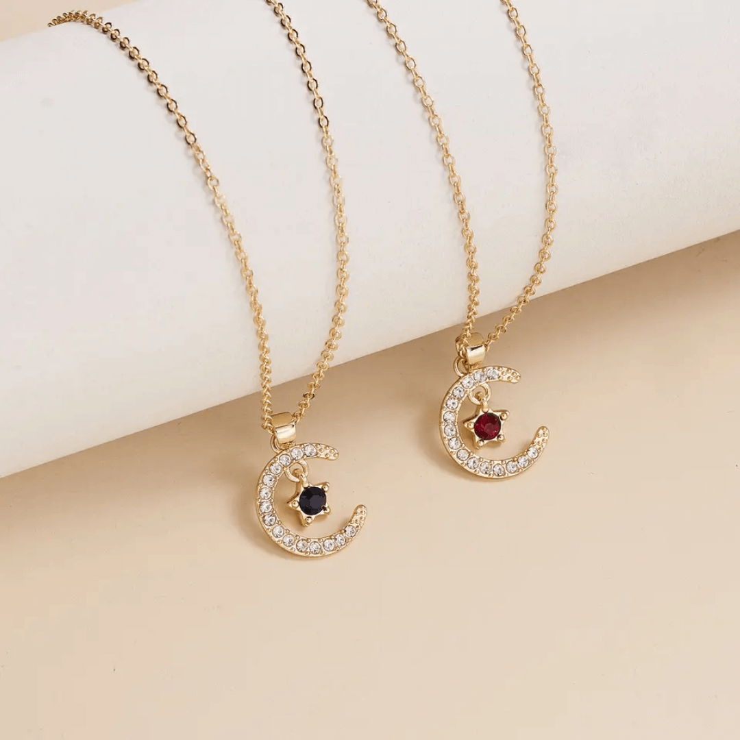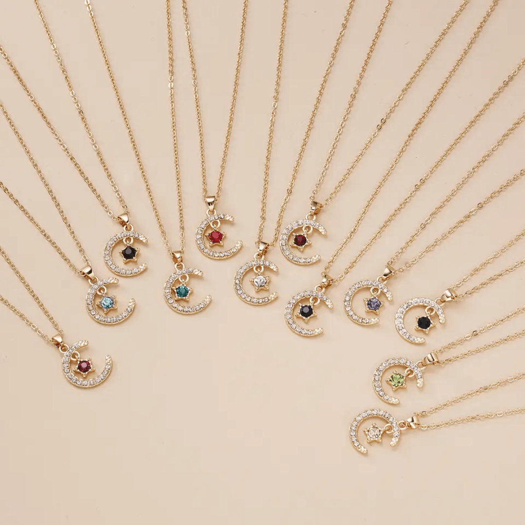 This enchanting necklace features a radiant birthstone cradled between a crescent moon and twinkling star—designed to represent your journey, your light, and the universe’s quiet guidance.
